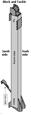 Hardware attached to the side jambs of newer replacement windows. It provides the tensional force that makes the sash operation easier. When this piece of hardware fails, the sash of the window does not stay up.